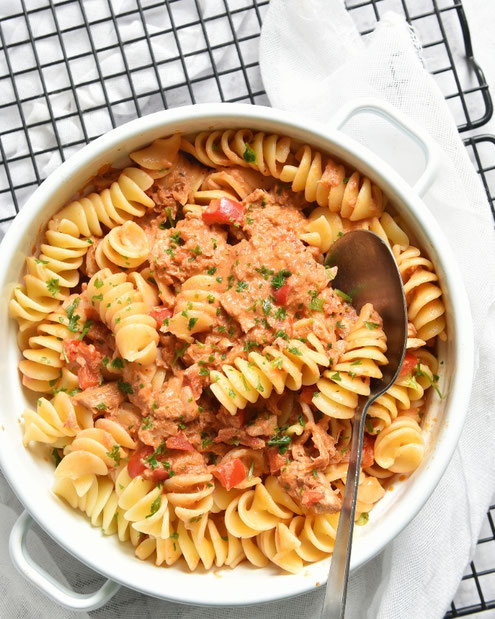 Pasta in Thunfisch-Tomatensosse (auch vegan möglich)
