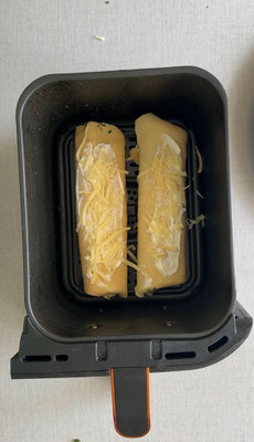 Mit der Nahtseite nach unten in den Airfryer legen.